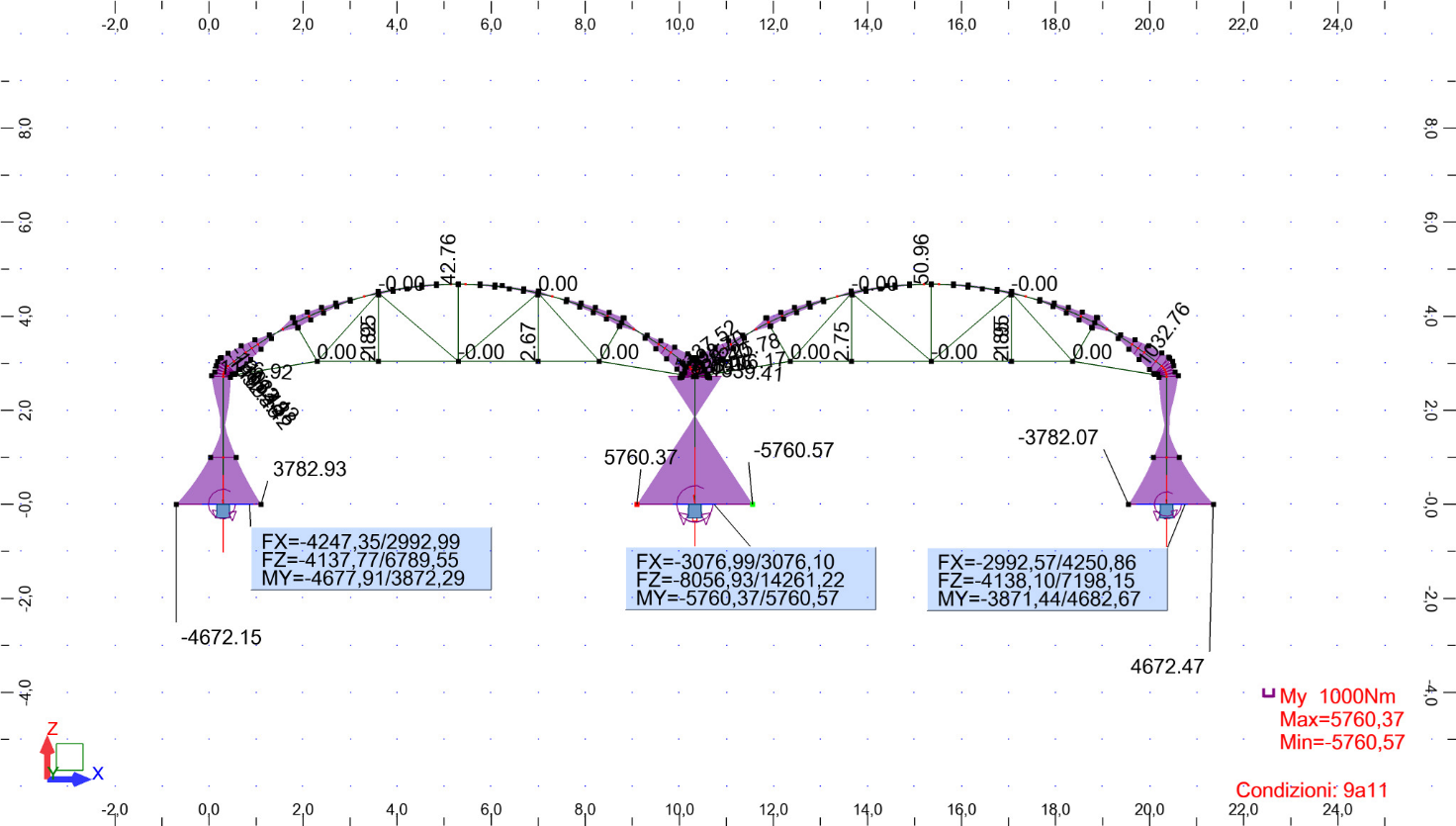 The structural verification is performed using a three-dimensional model that accurately replicates the mass distribution, stiffness and strength of the structure. For the calculation of stresses, the Finite Element Method (FEM) is employed.